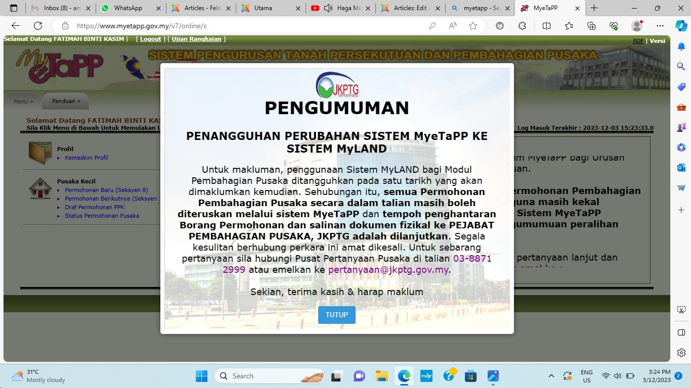 Aktiviti: Permohonan Bicara Harta Pusaka (Myetapp)