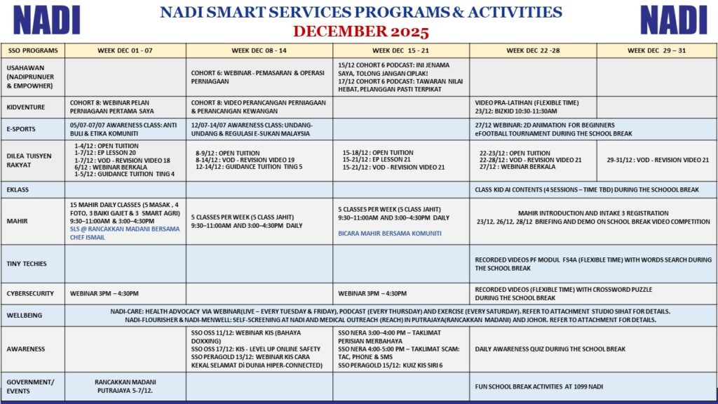 JADUAL PROGRAM & AKTIVITI DISEMBER 2025